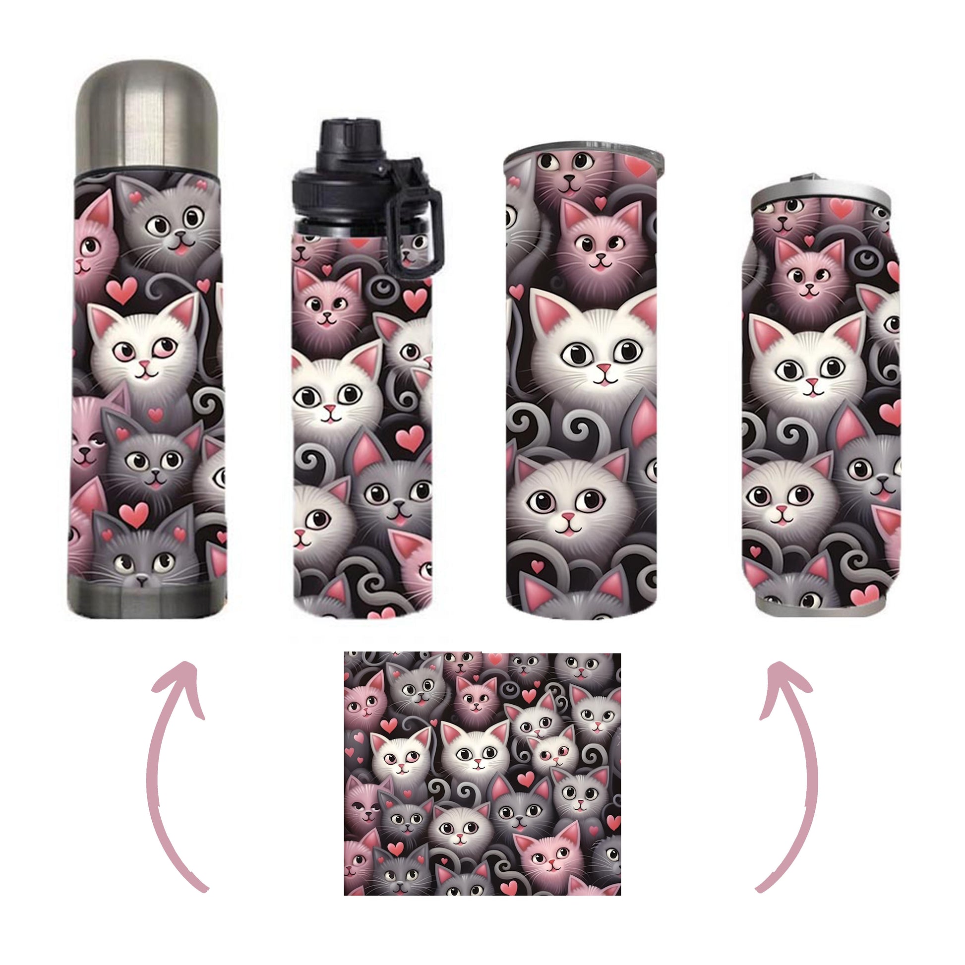Cats - Kitty Love Design on Tumbler, Can, Flask, or Water bottle