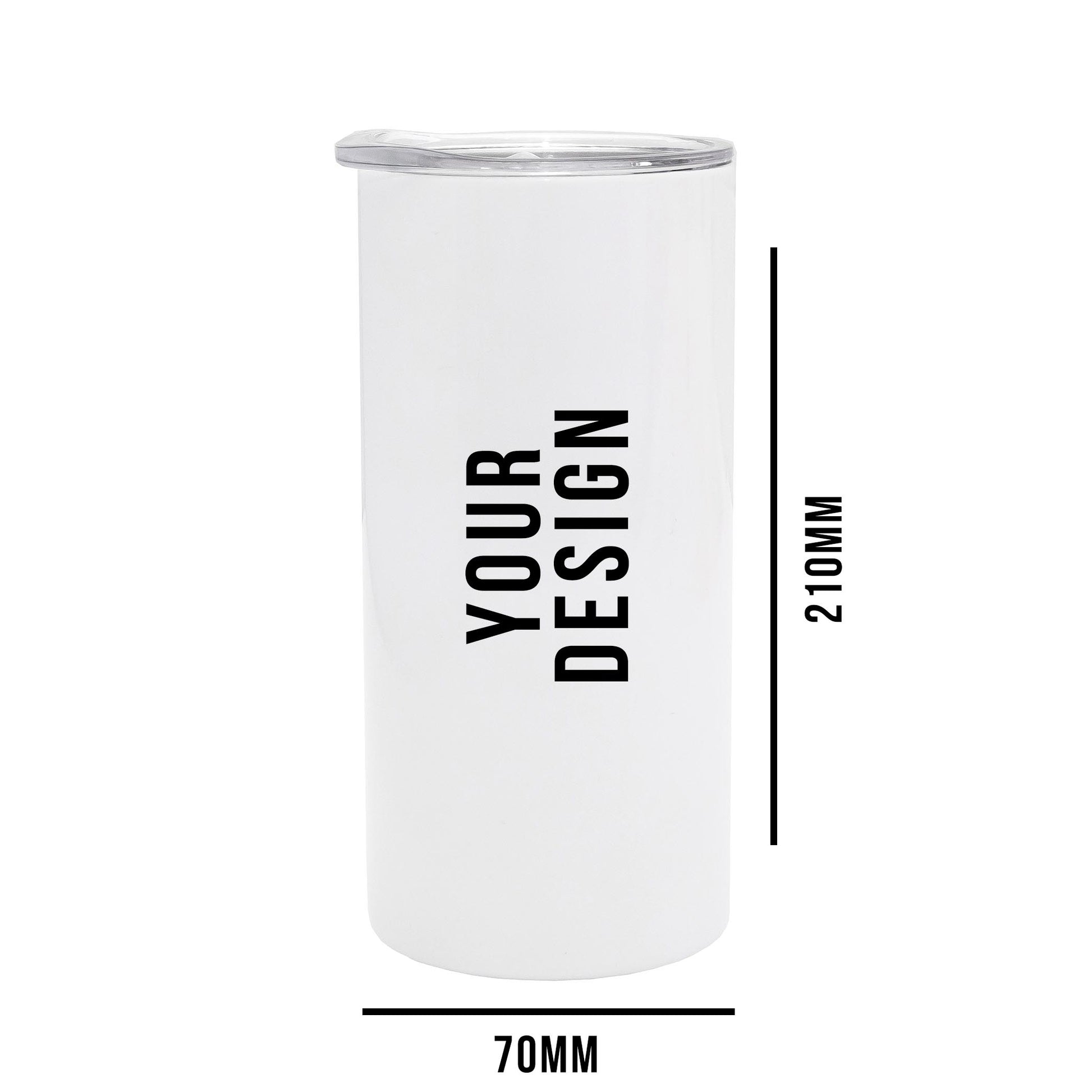 Elevate your custom gifting game with our Double Wall Stainless steel skinny Tumbler in pristine white.
