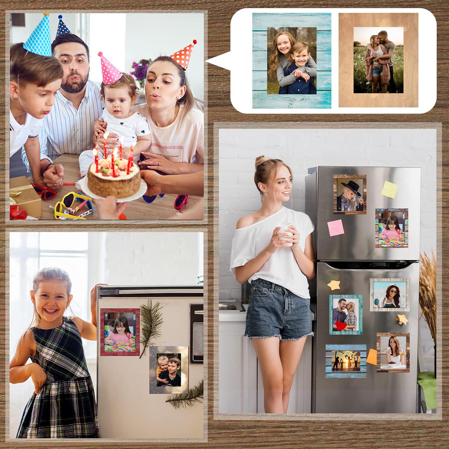 Magnetic Photo Frames for Fridge- Blue Wood (Pack of 4)