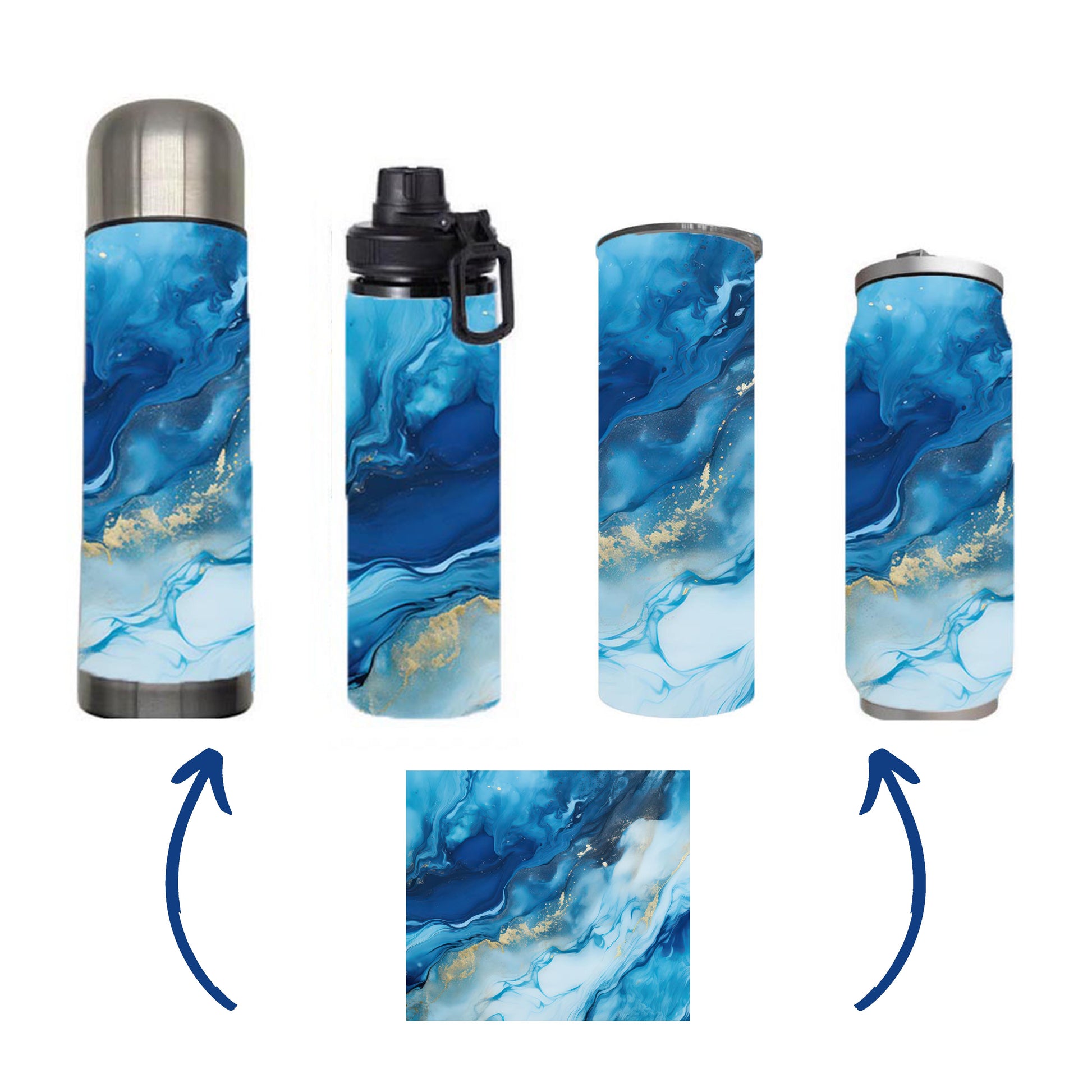 Marble - Blue Marble Design on Tumbler, Can, Flask, or Water bottle