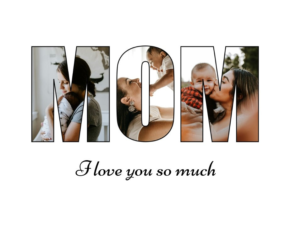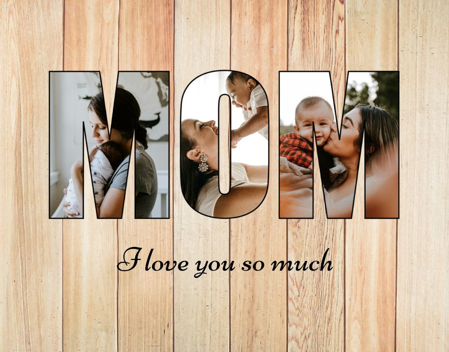 Select your size, UPLOAD 3 photos (one image per letter) + your desired text message underneath "Mom" and then ADD TO CART!