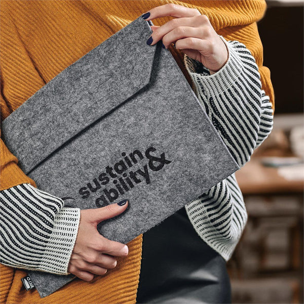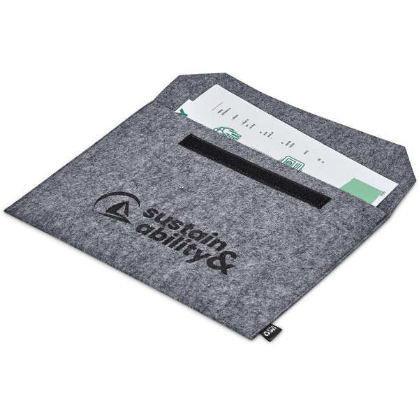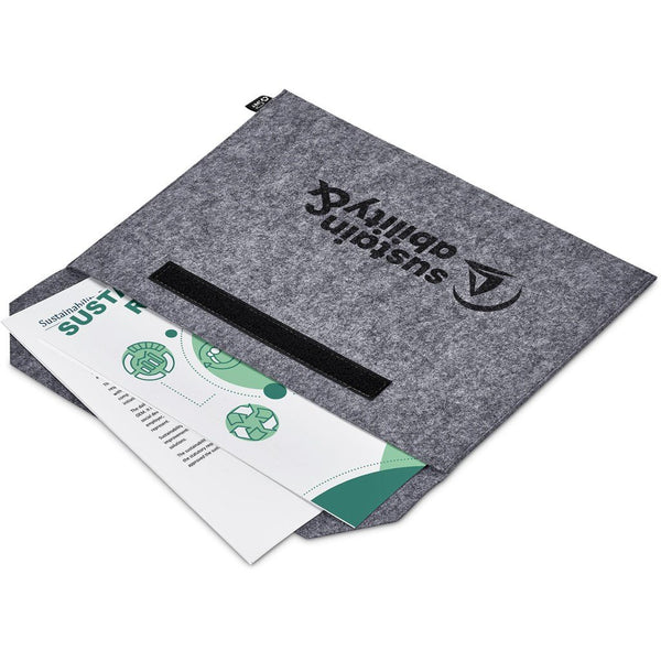 Made from recycled PET felt fabric, this document bag is soft and comfortable to carry. It fits A4 size documents, and is spacious enough to add additional stationery. Slips easily into your bag, and keeps your documents organised and secure.