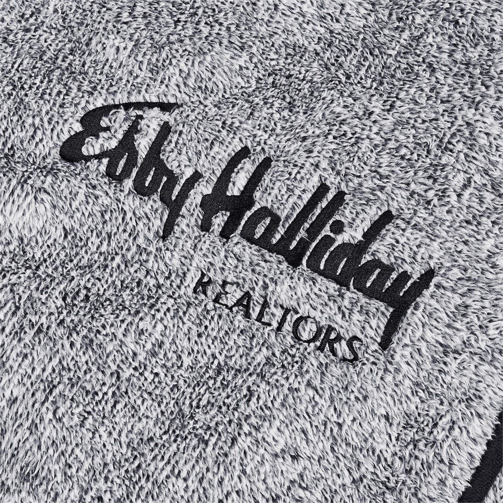 heather fleece blanket with plain black fleece binding